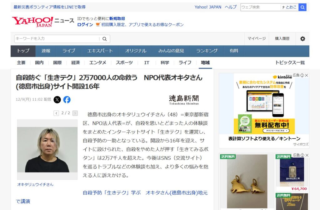【NPO生きテク】Yahoo!ニュースに掲載されました
